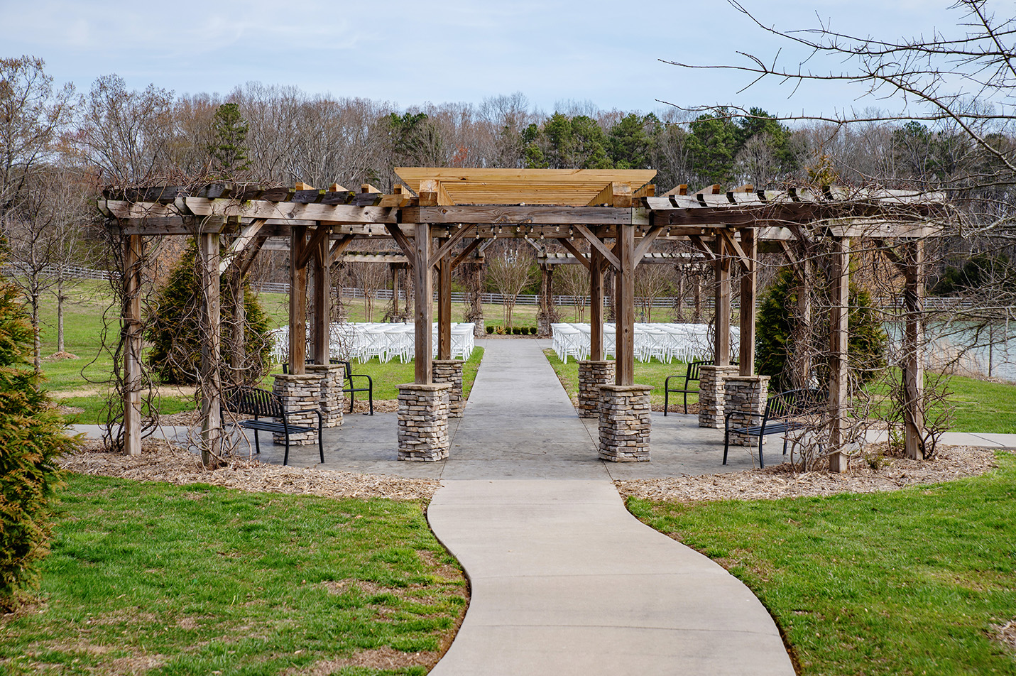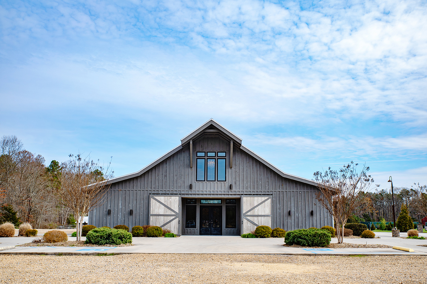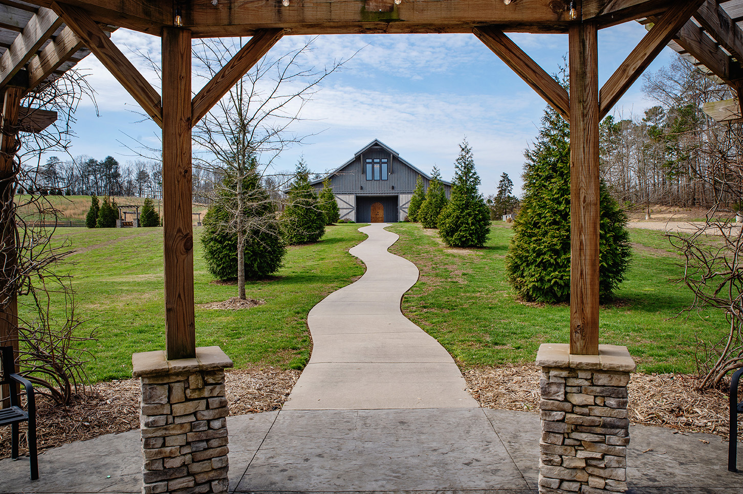 The Apple Barn at Howe Farms is perfect for your barn wedding Chattanooga. This venue boasts a charcoal grey exterior, a white-washed interior, and is filled with 15 gorgeous crystal chandeliers. The outdoor ceremony site is surrounded by natural elements with stacked stone pillars supporting wooden pergola-style arbors which perfectly frame the bride and groom during their ceremony.