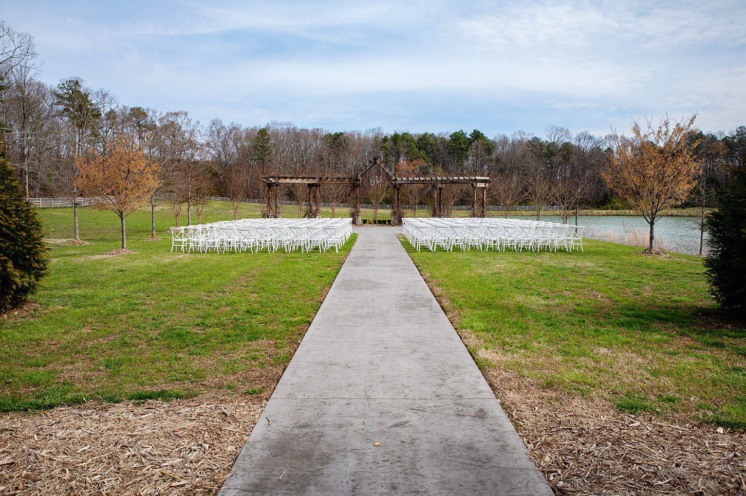 The Apple Barn’s outdoor wedding ceremony site is nestled between waterfront and forest views and is home to our longest aisle. The stone footers and wooden arbors are a beautiful setting for any variety of styles.